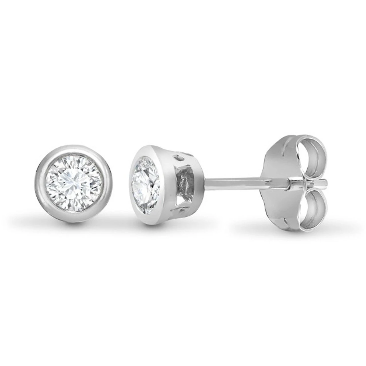 18ct White Gold 20pts Rub Over Diamond Stud Earrings P702E18-014-020