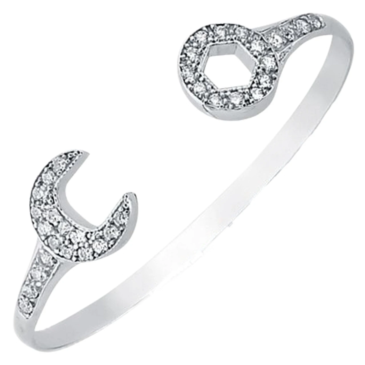 925 Sterling Silver Cubic Zirconia Set Spanner And Socket Bracelet Baby Children Bangle P702018