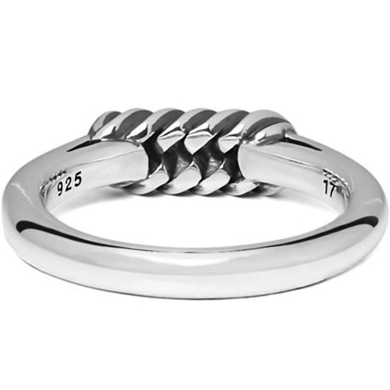 - The design of this subtle silver ring is based on the well-known link of the Chain family.