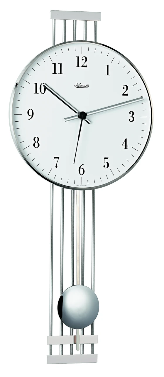 Hermle Radio Controlled Nickel White Dial Wall Clock With Pendulum 70981-000871