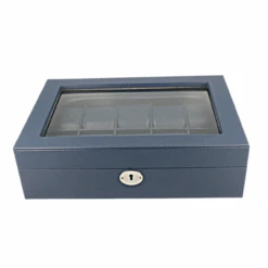 - Watch storage box with a unique navy blue leather finish.