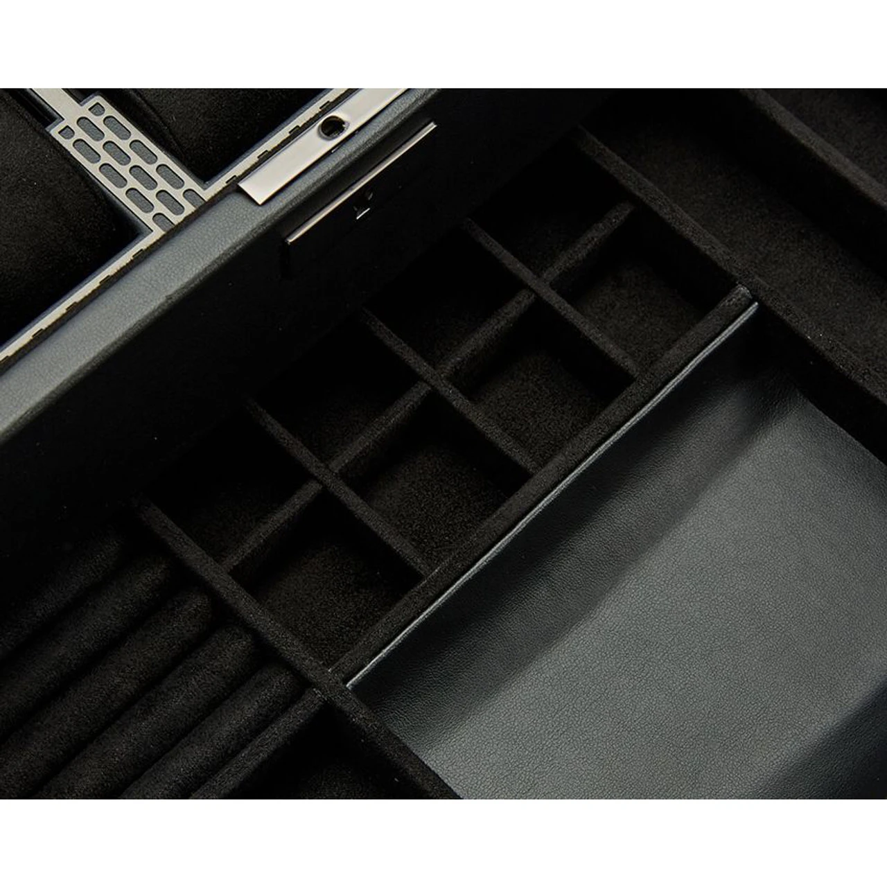 - It features: (8) ring rolls, for stud earrings, tie bars or rings, (12) cufflink compartments, and (2) Strap compartments. (1) bracelet compartment and (1) coin scoop.